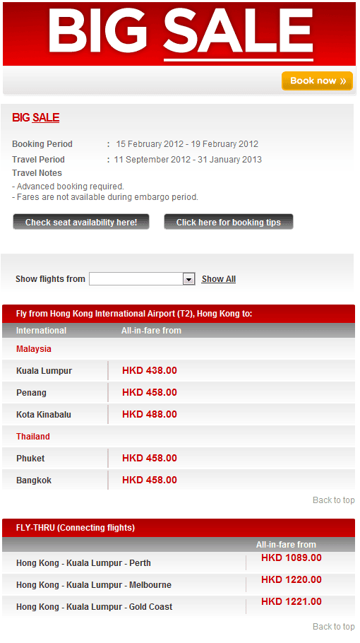 Air Asia 亞洲航空大優惠 BIG SALE 2月15日午夜十二時正式開搶 (優惠由2月15日至2月19日)