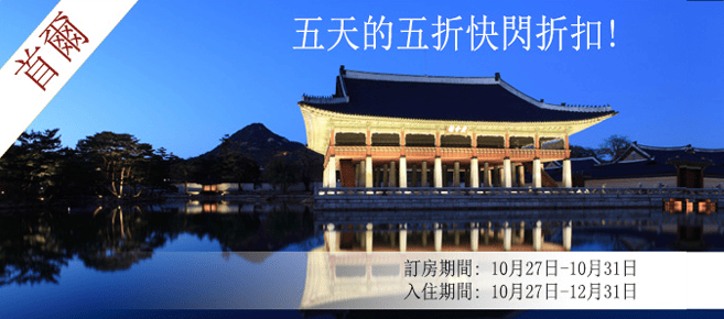 Agoda韓國限時5天優惠,低至5折 (優惠至10月31日)