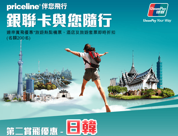 Priceline HK 同銀聯推出左賞飛優惠第二浪