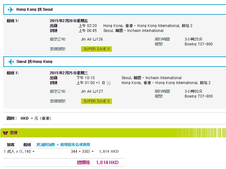 機票只需$1,140 + $674 (稅) = 機票連稅$1,814