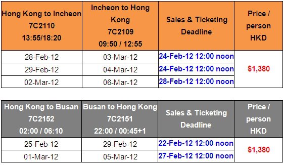 秒殺優惠 香港往返韓國首爾、釜山 $1,380 – 濟州航空 (優惠至2月28日)