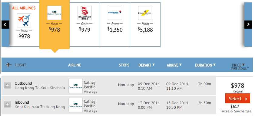 香港往返沙巴二人同行每人只需$978,連埋稅$1,595