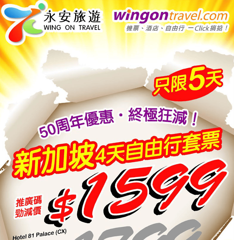 永安旅遊一連五日推出50周年新加坡終極狂減優惠