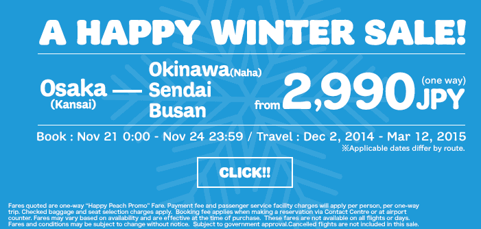 以上價錢並未包括託運行李及機上餐飲既費用,託運行李每程每件20kg以下2,600円
