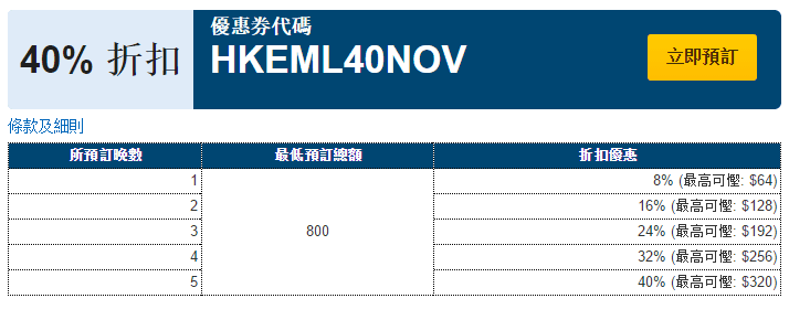 優惠詳情:http://www.expedia.com.hk/p/hidden-coupon?code=HKEML40NOV