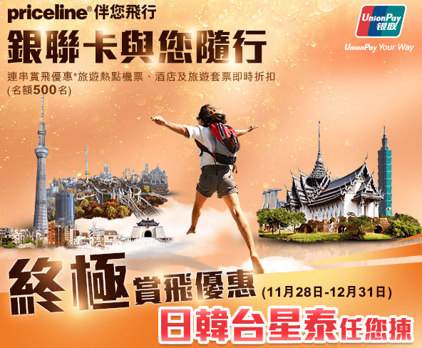 Priceline HK 同銀聯推出左終極賞飛優惠