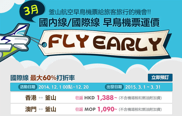 3月份出發!香港飛釜山來回只需$1,388,澳門飛釜山來回MOP1,090 – 釜山航空 (優惠至12月20日)