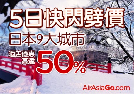 日本酒店限時5天高達五折優惠 – AirAsiaGO (優惠至12月6日)
