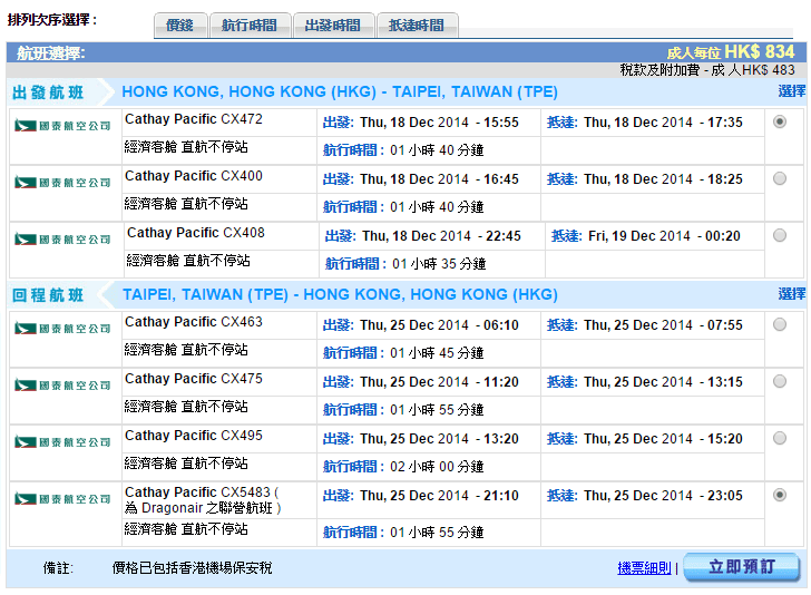 香港往返台北、高雄二人同行每人只需$834,連稅$1,317,價錢唔錯