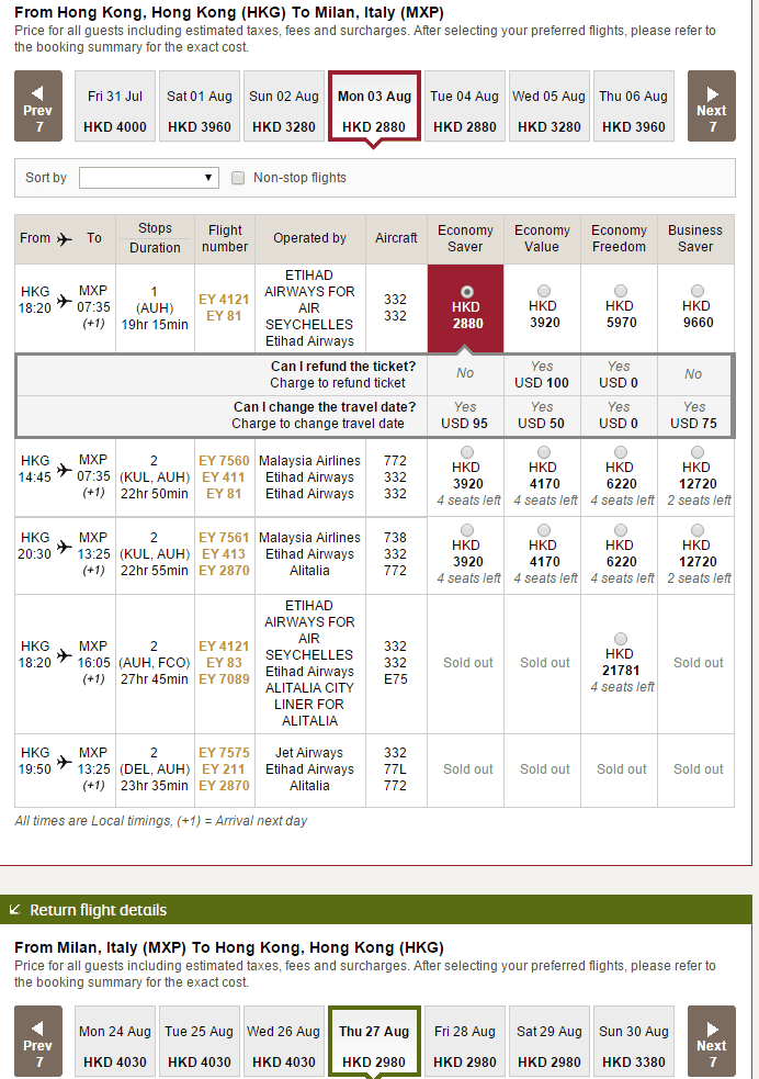 呢隻優惠可以open jaw,即係去同返唔一定要係同一個地方,大家係阿提哈德航空揀 Multiple destinations / Stopovers 就可訂到open jaw
