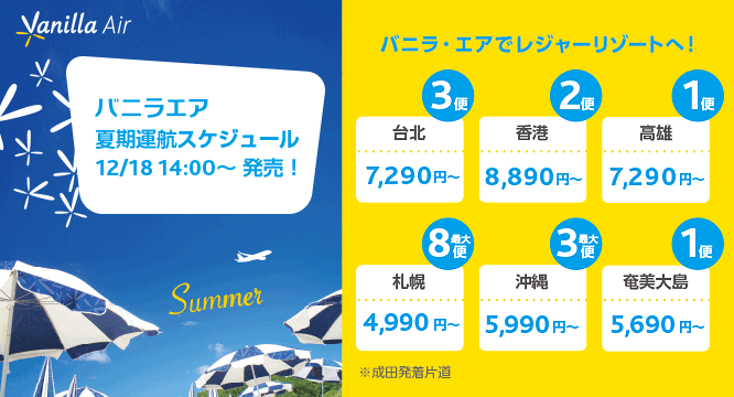 中午1點開賣!新航季出發!香港飛東京成田單程$628起 – 香草航空 Vanilla Air