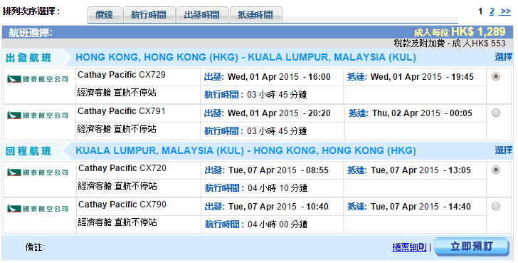 經我們測試,以吉隆坡4月1日出發,4月7日返回為例
