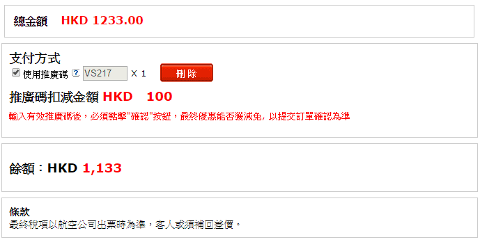 配合永安減$100推廣碼,香港往返台北、高雄、台南只需$641,連稅$1,133