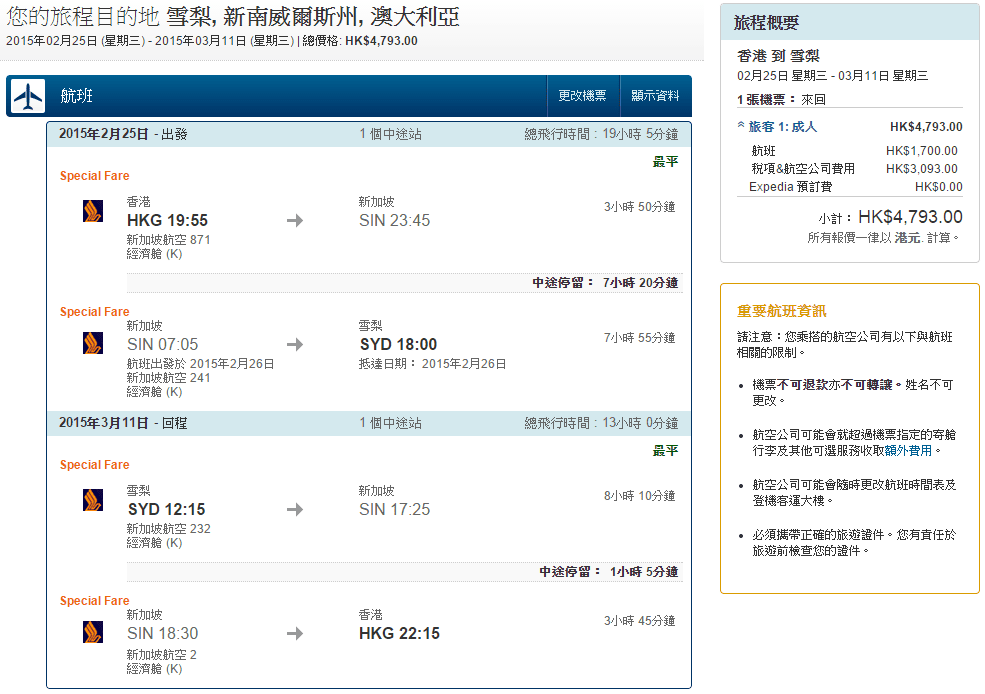 新加坡航空上星期推出左隻澳洲機票優惠,價錢都唔錯