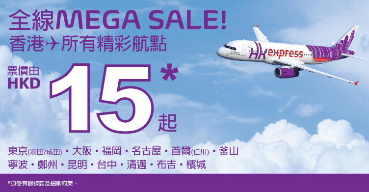 HK Express 又有Mega Sale啦!所有航點都有優惠!