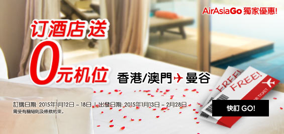 又有$0機位!開搶啦!訂AirAsiaGO套票!香港/澳門飛曼谷機位$0 (優惠至1月25日)