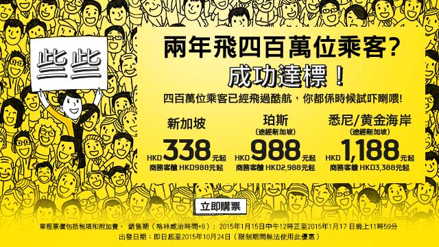 開賣啦!暑假都有平!10月24日前出發!香港飛新加坡來回連稅只需$711、澳洲$2,281起 – Scoot 酷航 (優惠至1月17日)