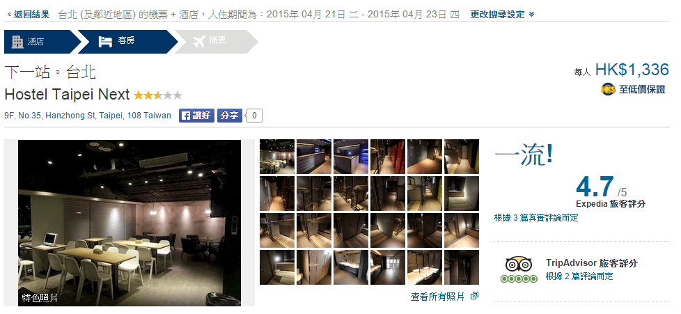 當中新驛旅店台北車站二館連稅$1,723起,新驛旅店一向評價都很高,詳情:http://www.expedia.com.hk