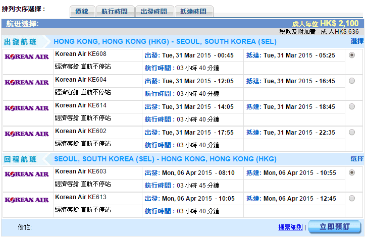 復活節飛首爾既話可以3月31日出發,4月6日或者4月8日早機返