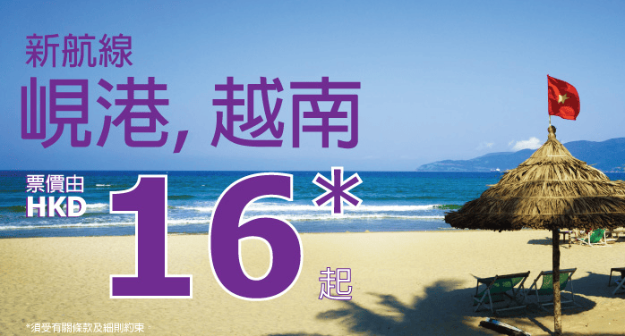 新航線開賣!香港飛越南峴港來回只需$32 – HK Express (優惠至1月26日)