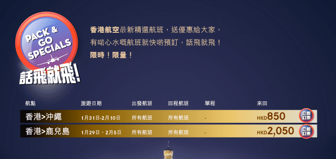 香港航空新一期”話飛就飛”優惠有兩個日本航點,沖繩價錢好吸引