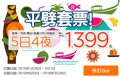 AirAsiaGO抵玩套票!曼谷、布吉、清邁、沙巴、吉隆坡5日4夜套票連稅只需$1,399起 (優惠至2月1日)