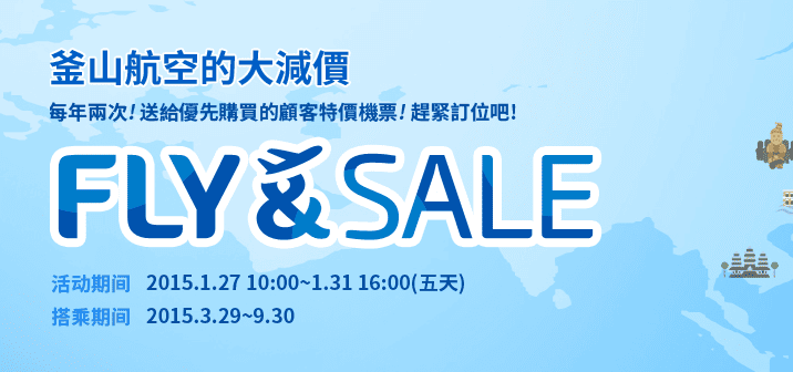 釜山航空將會係香港時間朝早10點推出每半年一次大優惠,限時五日