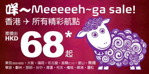 嘩!開搶啦!全線$68!所有航線單程只需$68 – HK Express (優惠至2月16日)