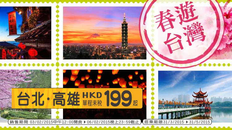 開賣啦!澳門往返台北、高雄來回連稅只需$612 – 台灣虎航 (優惠至2月6日)