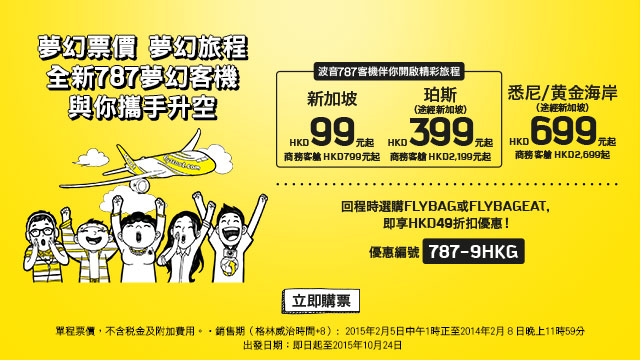 另外回程選購FLYBAG 或 FLYBAGEAT輸入優惠編號:787-9HKG 仲有多$49減