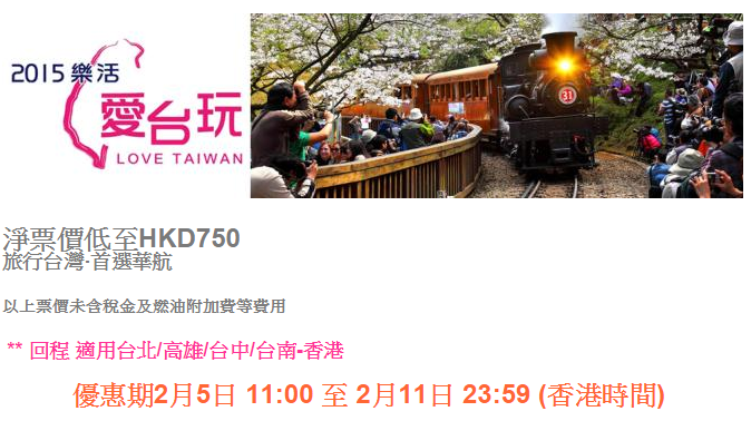 4月28日前出發!香港往返台北、高雄、台中、台南只需$750起 (可open jaw) – 中華航空 (優惠至2月11日)