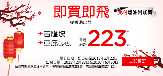 AirAsia 今日推出左即買即飛新優惠,唔似之前Big Sale要等好耐先可以起行
