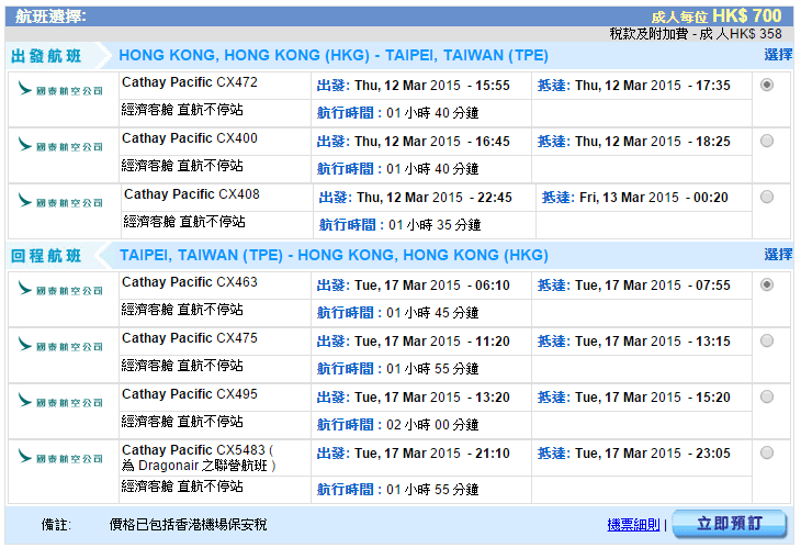 由於國泰/港龍台北、高雄優惠賣左一段長時間,一些靚時間既航班可能無咩平飛了