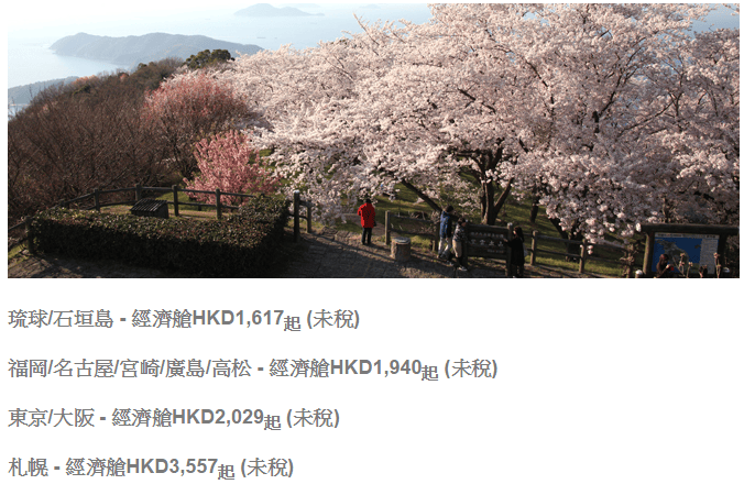 香港往返日本各地只需$1,617起