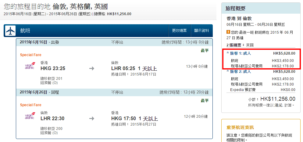 機票只需$3,450 + $2,178(稅) = 機票連稅$5,628