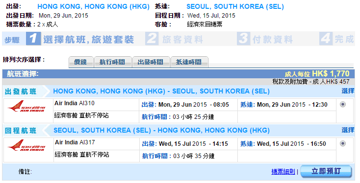 經我們測試,以6月29日出發,7月15日返回為例