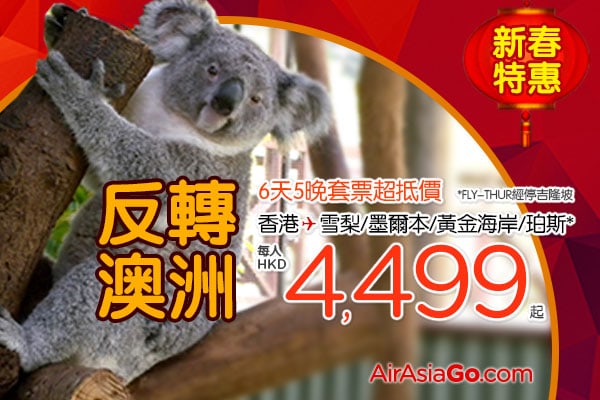 除左尋日介紹既泰國同馬來西亞套票外,AirAsiaGO仲推出左澳洲套票優惠!