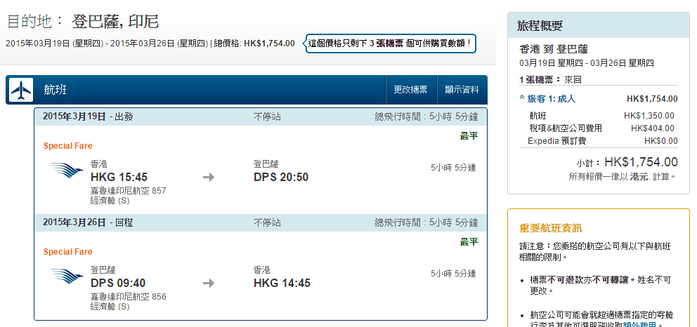 出發日期由而家至3月30日,不過check過去程平飛集中係3月19日或之前