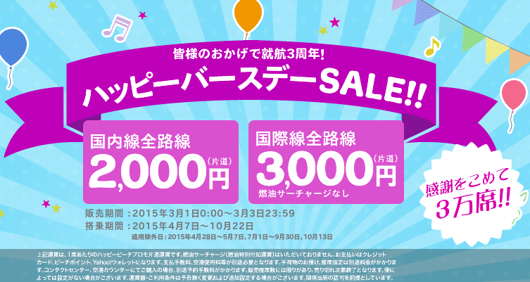 樂桃日本接力推出3周年生優惠,需要買回程既話可以留意