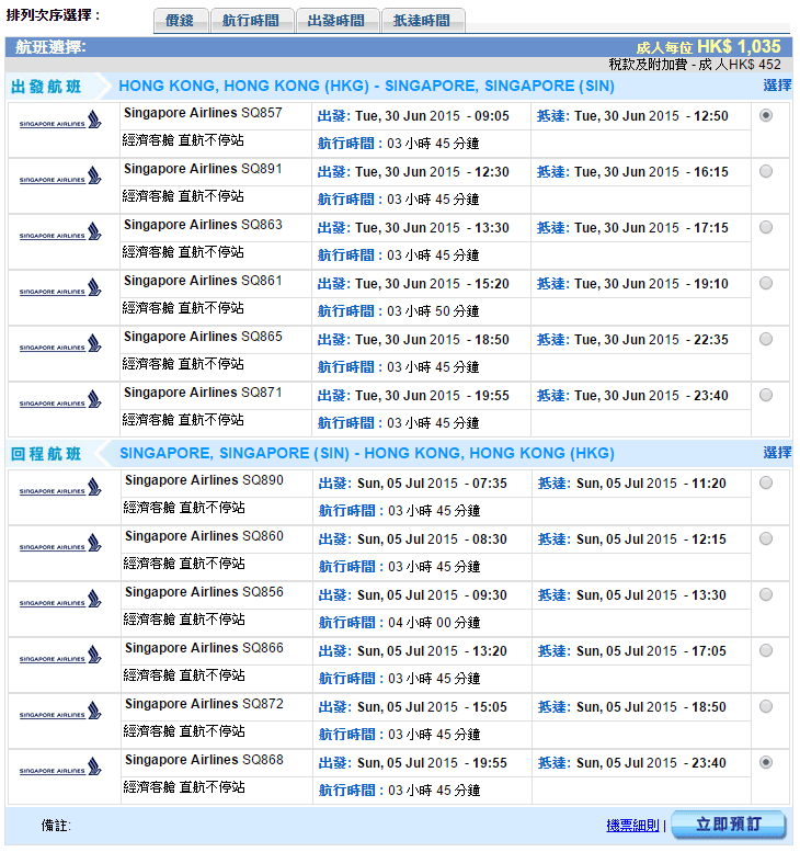 經我們測試,以6月30日出發,7月5日返回為例