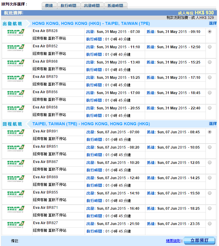 大家可以上Priceline HK訂購 (“搜尋指定航空公司”揀”EVA AIR”先會顯示所有航班)