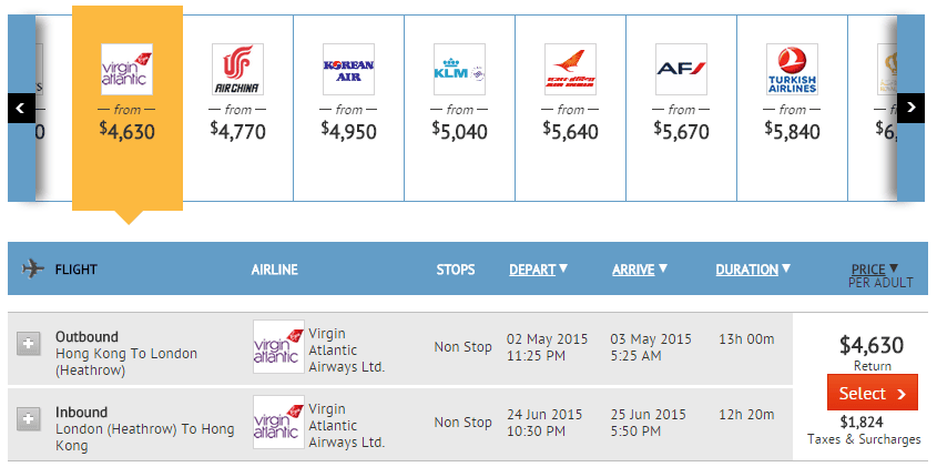 香港直航往返倫敦只需$4,630,連稅$6,454