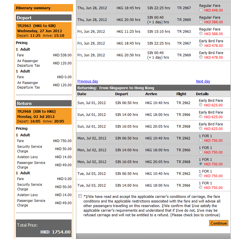 來回連稅就 Total $1,754 ,除返每位只不過係$877,每人九百蚊都唔駛就可以去新加坡玩番轉,超值