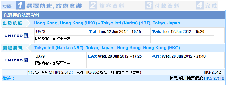 (另外聯合航空官網做緊另一隻艙等優惠,香港往返東京只需$2,000,連埋稅就$2,859)