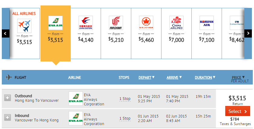 經我們測試,以溫哥華5月1日出發,6月1日返回為例