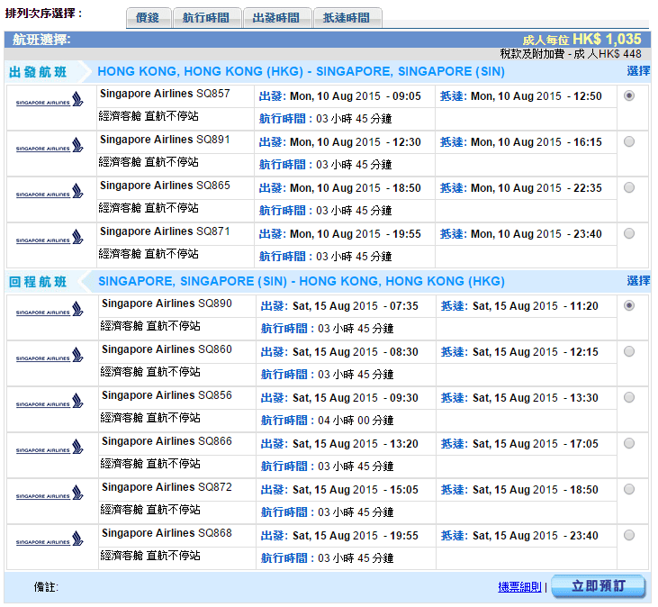7月同8月去程唔可以揀SQ001 08:00-11:45,回程唔可以揀SQ002 18:40-22:25