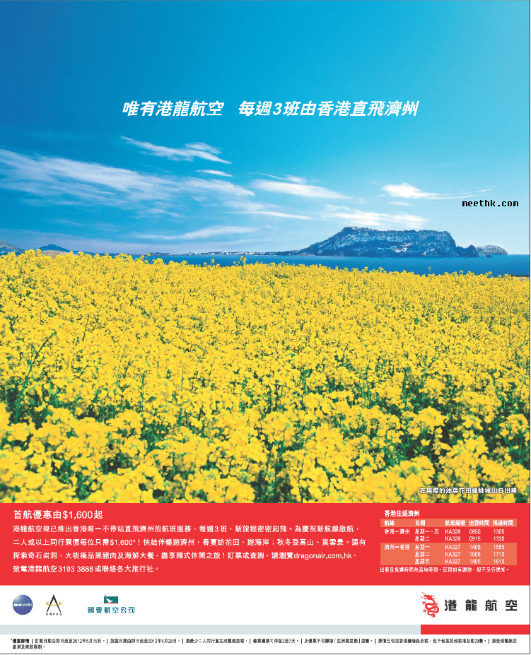 港龍新航線開航優惠 五至六月出發 香港往返韓國濟州二人同行每位只需$1,589 – 港龍航空 (優惠再度延長至5月15日)