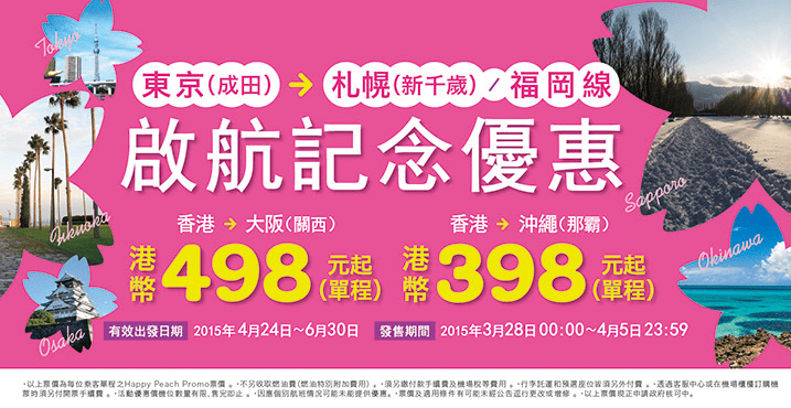 開賣啦!香港飛沖繩單程只需$398,大阪$498 – 樂桃航空 (優惠至4月5日)