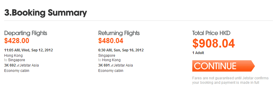 3/4 09:00 update Jetstar 個訂票系统更新了, 可以訂到, 香港往返新加坡單程只需港幣 $428 (包稅),來回包稅約港幣908.04