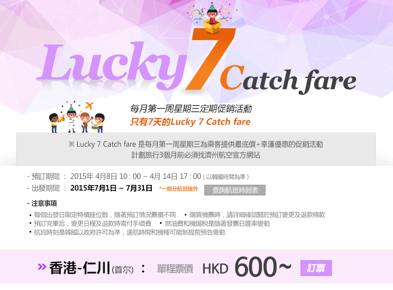 濟州航空將會係聽朝9點(4月8日9am)推出7月飛首爾早鳥優惠